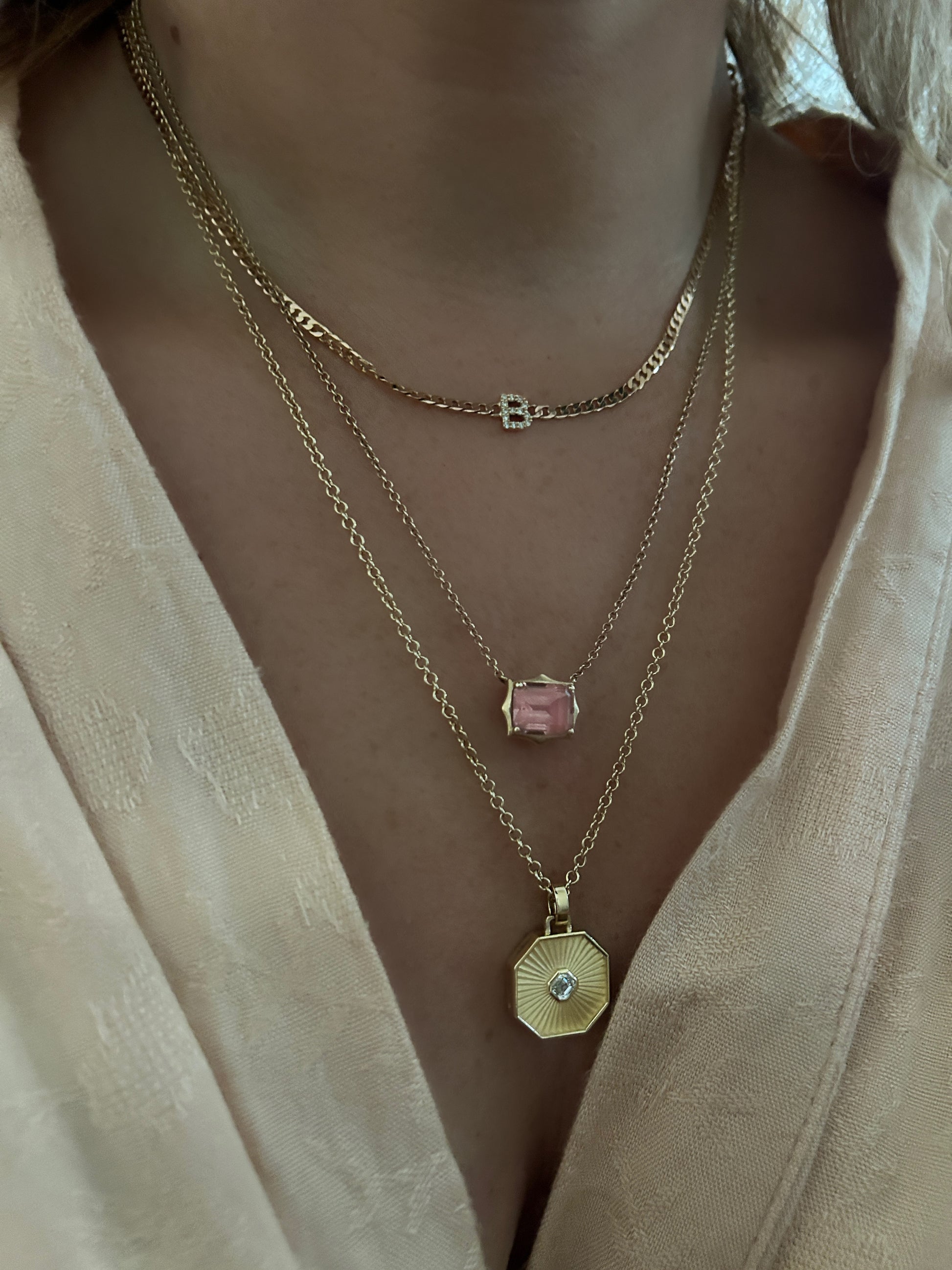 9k gold radiant octagon pendant with diamond centre on 50g chain